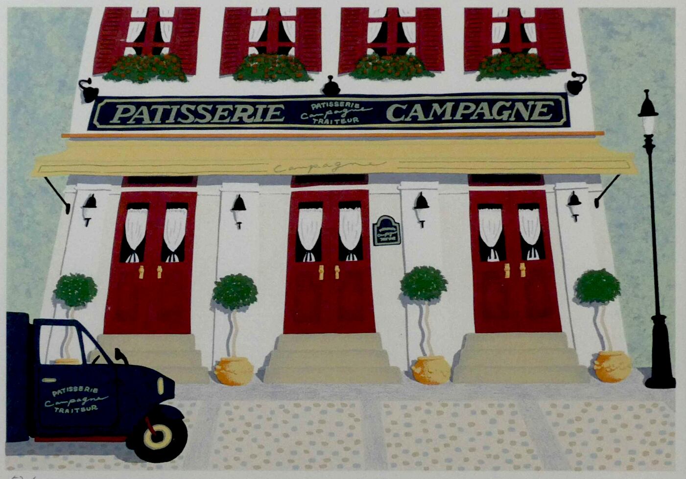 かわいらしい色使いのシルクスクリーン版画